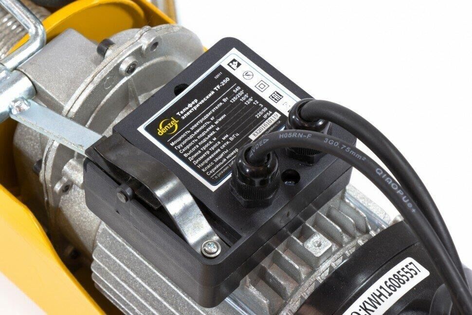 DENZEL 52011 Тельфер электрический TF-250, 0,25 т, 540 Вт, высота 12 м, 10 м/мин