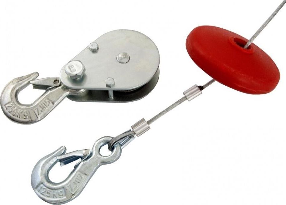 Тип канатный. Грузоподъемность 125 кг. Мощность 0.54 кВт. Напряжение 220 В. Высота подъема 12 м. Диаметр троса 3 мм. Длина троса 12 м. Высота подъема с блоком полиспаст 6 м. Грузоподъемность с блоком полиспаст 250 кг.