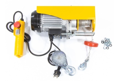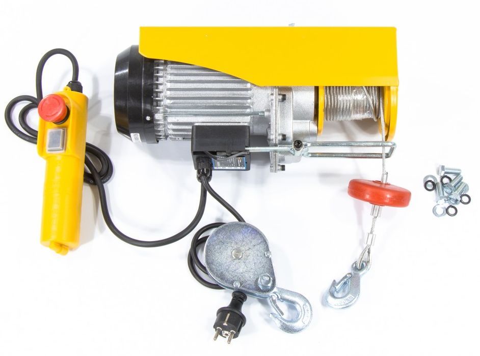 Тип канатный. Грузоподъемность 250 кг. Мощность 1 кВт. Напряжение 220 В. Высота подъема 12 м. Диаметр троса 4.2 мм. Длина троса 12 м. Высота подъема с блоком полиспаст 6 м. Грузоподъемность с блоком полиспаст 500 кг.