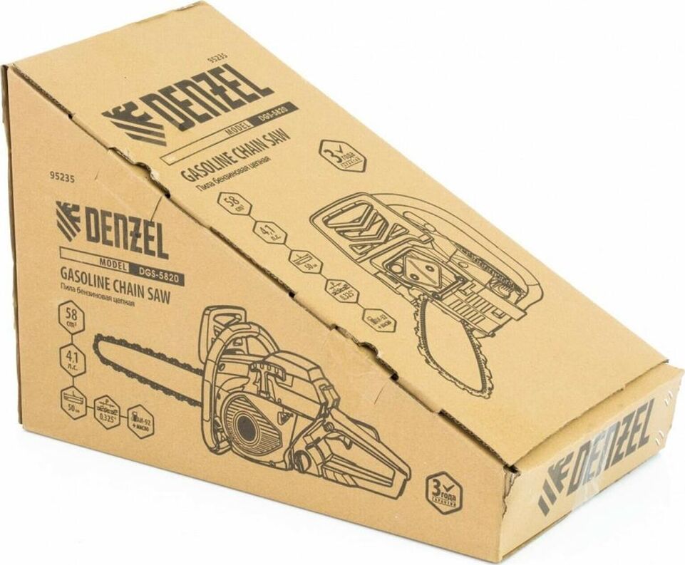 DENZEL 95235 Пила цепная бензиновая DGS-5820, шина 50 см, 58см3, 4,1 л.с.