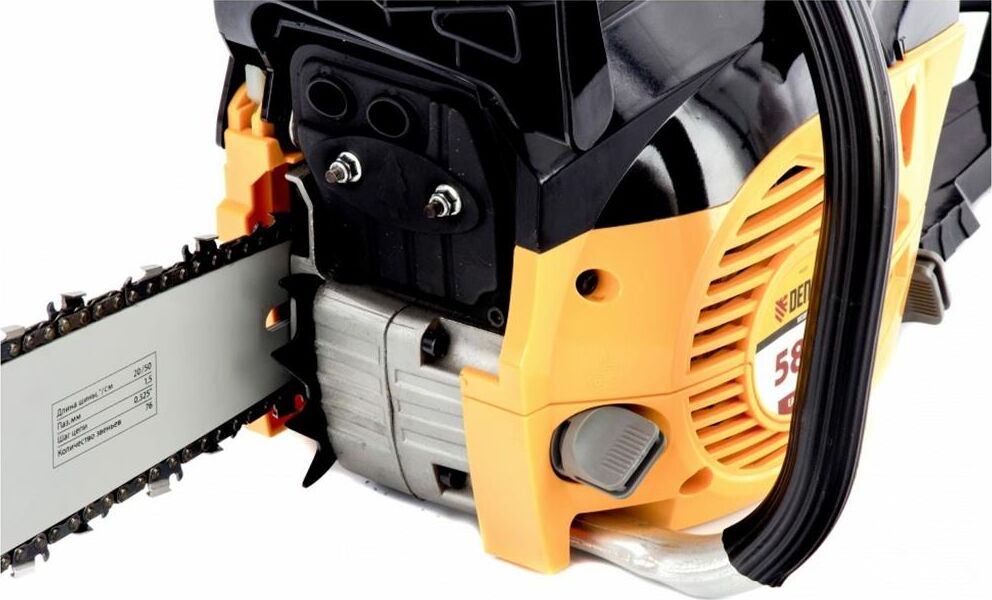 Тип двигателя бензиновый 2-тактный. Мощность 4.1 л. с.. Класс пилы бытовая. Количество звеньев 76 шт. Объем масляного бака 260 мл. Объем топливного бака 550 мл. Уровень шума 114 дБ. Объем двигателя 58. Длина шины 500 мм. Шаг цепи 0.325 дюйма. Толщина ведущего звена цепи 1.5 мм. Число оборотов холостого хода 3000 об/мин.