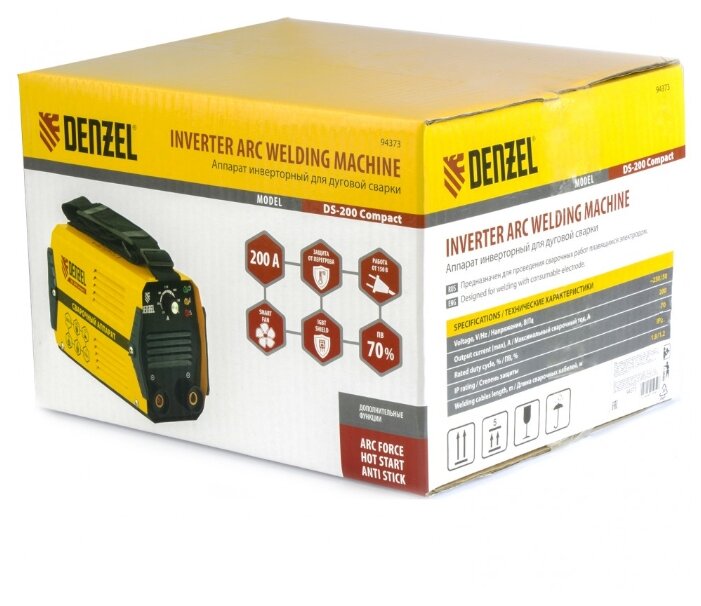 DENZEL Аппарат инвертор. дуговой сварки DS-200 Compact, 200 А, ПВ 70%, диам.эл. 1,6-5 мм 94373