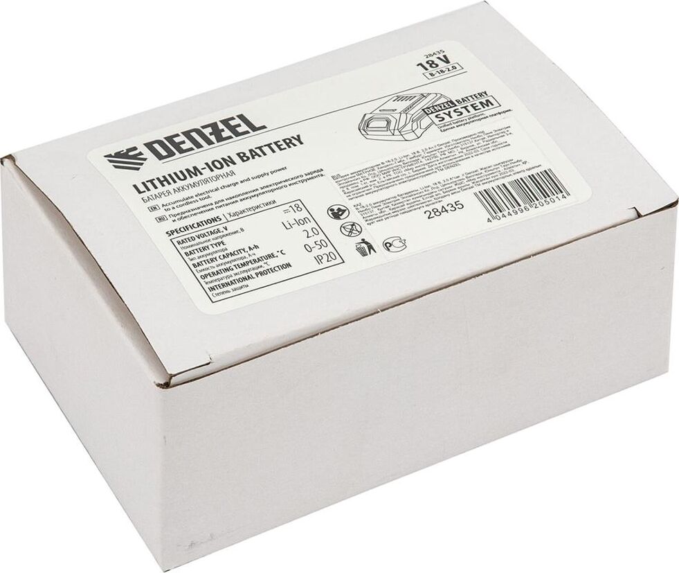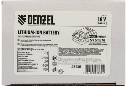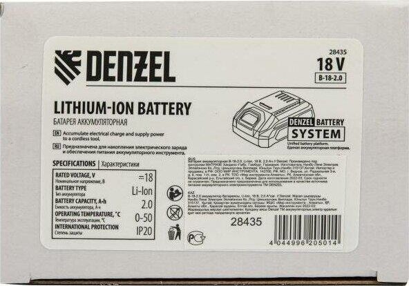 DENZEL Батарея аккумуляторная B-18-2.0, Li-Ion, 18 В, 2,0 Ач 28435