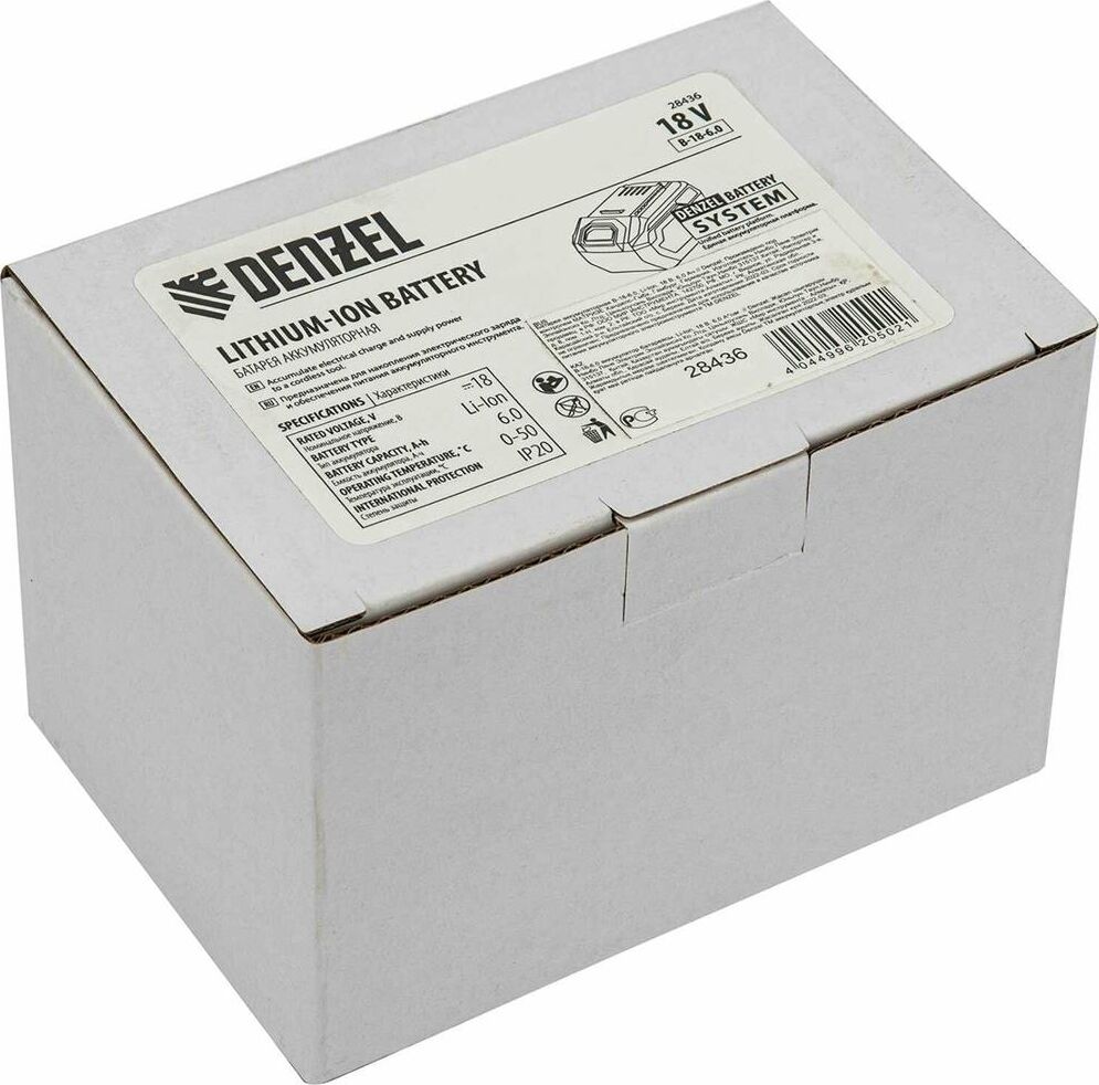 DENZEL Батарея аккумуляторная B-18-6.0, Li-Ion, 18 В, 6,0 Ач 28436