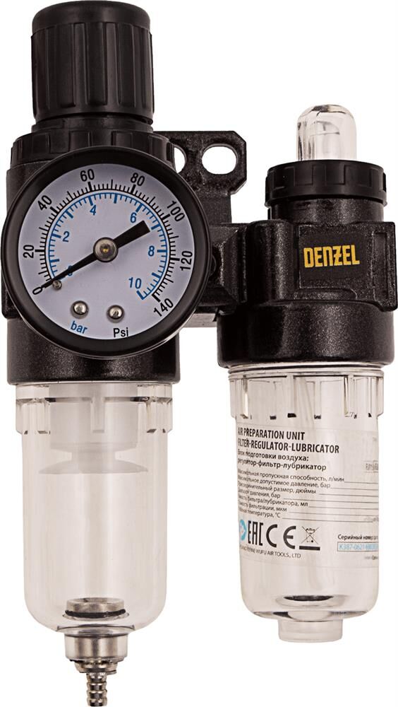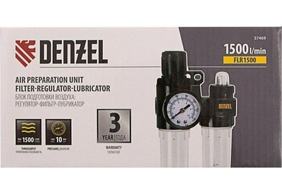 DENZEL Блок подготовки воздуха регулятор-фильтр-лубрикатор FLR1500, 10 бар, 1500 л/мин, 1/4 57469