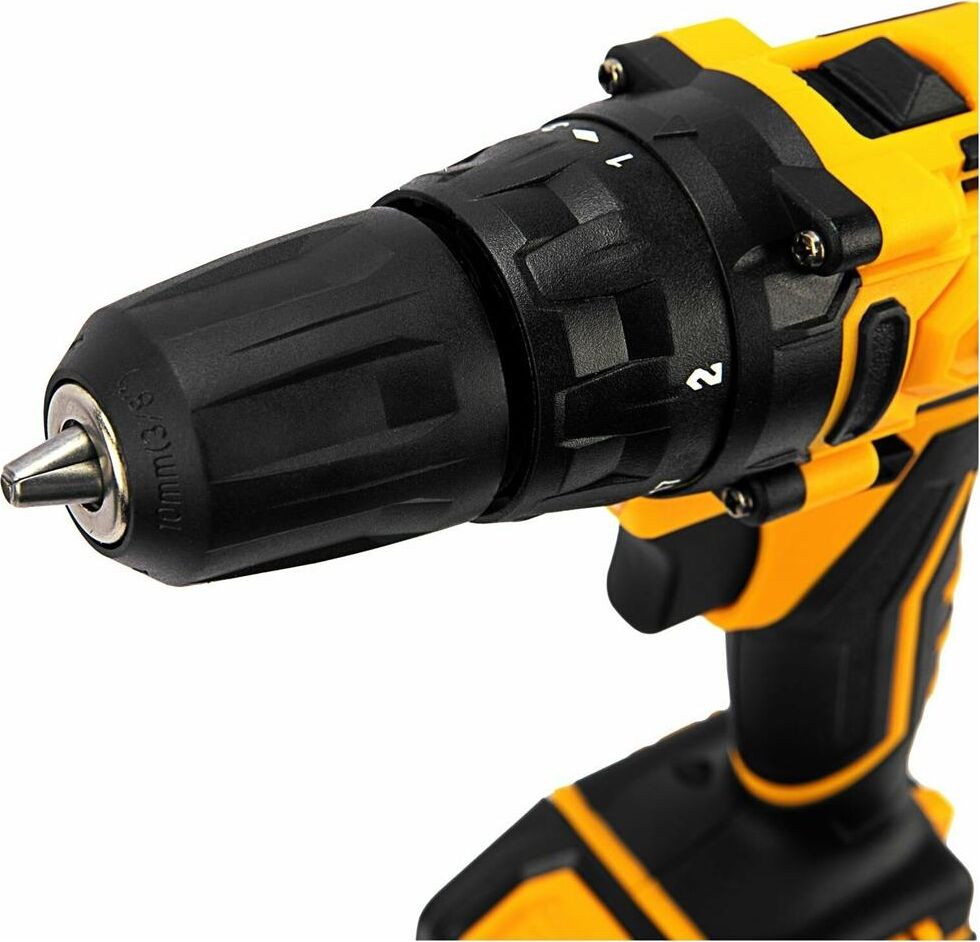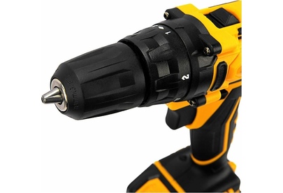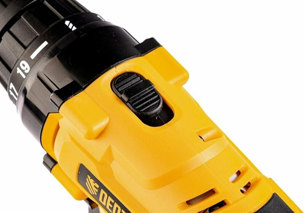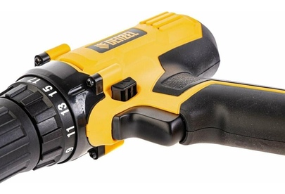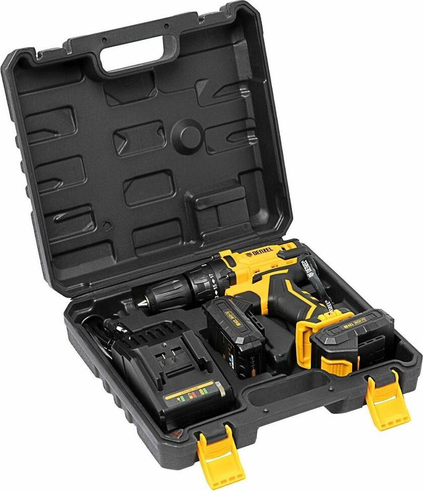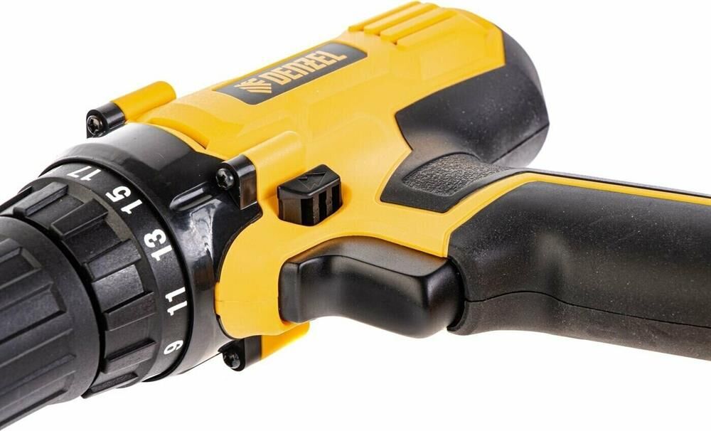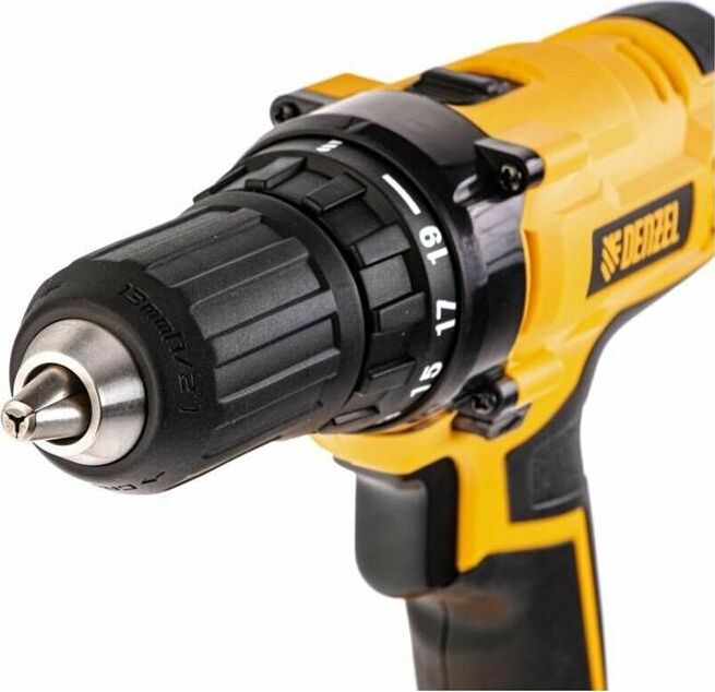 Мощная высокоэффективная аккумуляторная дрель-шуруповерт Denzel для выполнения серьезных задач оснащена патроном с увеличенным до 13 мм диаметром устанавливаемой оснастки. Особенности: улучшенный электродвигатель с увеличенным крутящим моментом; функция блокировки шпинделя; LED-подсветка рабочей зоны; LED-индикатор заряда батареи; защита от глубокого разряда и нежелательного перезаряда; реверс; регулировка частоты вращения; электрический тормоз Преимущества: аккумуляторы с интеллектуальной системой распознавания типа нагрузки совместимые с другими моделями аккумуляторного инструмента Denzel; муфта предельного момента с блокировкой шпинделя; информативный индикатор остаточного заряда аккумуляторной батареи; обрезиненная рукоятка; одномуфтовый патрон и подсветка рабочей зоны, гарантирующие комфортную работу Комплектация: Дрель-шуруповерт аккумуляторная - 1 шт.; Батарея аккумуляторная - 2 шт.; Устройство зарядное - 1 шт.; Сверла спиральные по металлу - 6 шт.; Биты 25 мм (тип SL, PH, PZ) - 6 шт.; Адаптер магнитны
