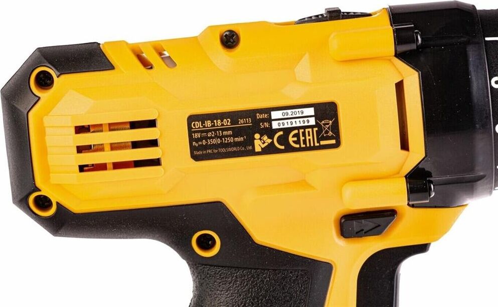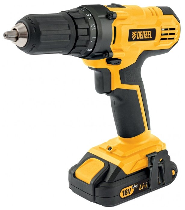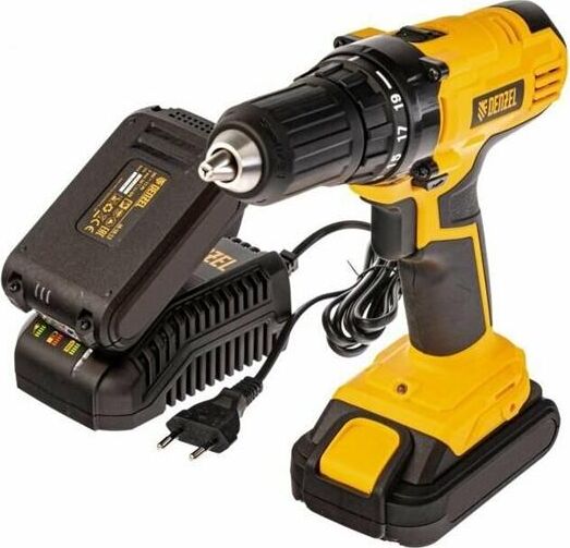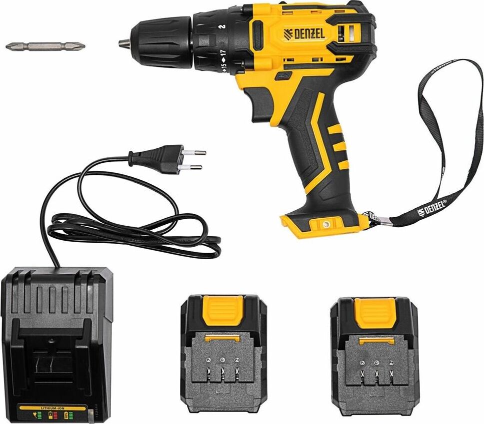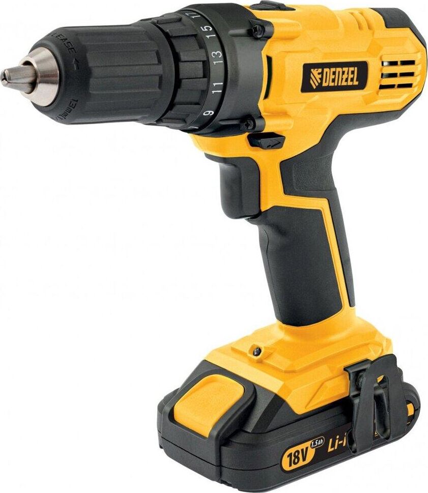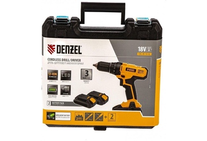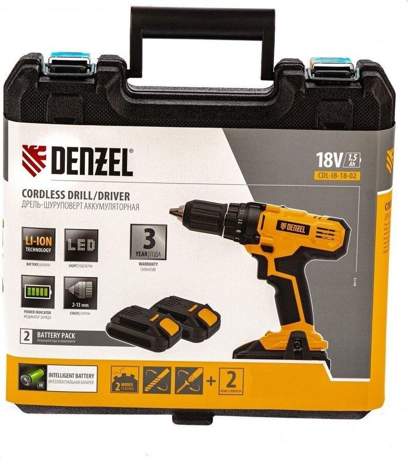 DENZEL CDL-IB-18-02, Li-Ion, Дрель-шуруповерт аккумуляторная 18 В, 1.5 А*ч, 2 аккумулятора