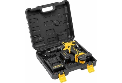 дрель-шуруповерт, аккумулятор - 2 шт.,, зарядное устройство, сверла спиральные по металлу - 6 шт., биты 25 мм (тип SL, PH, PZ) - 6 шт., адаптер магнитный для бит, инструкция по эксплуатации и гарантийный талон