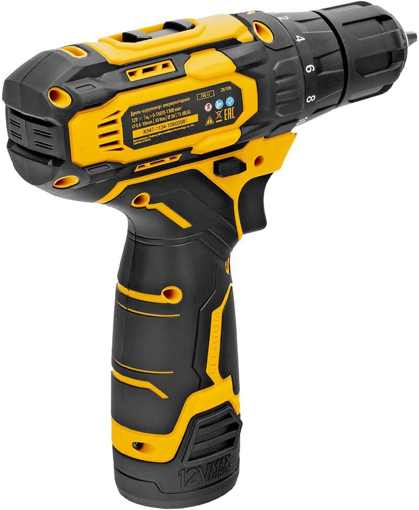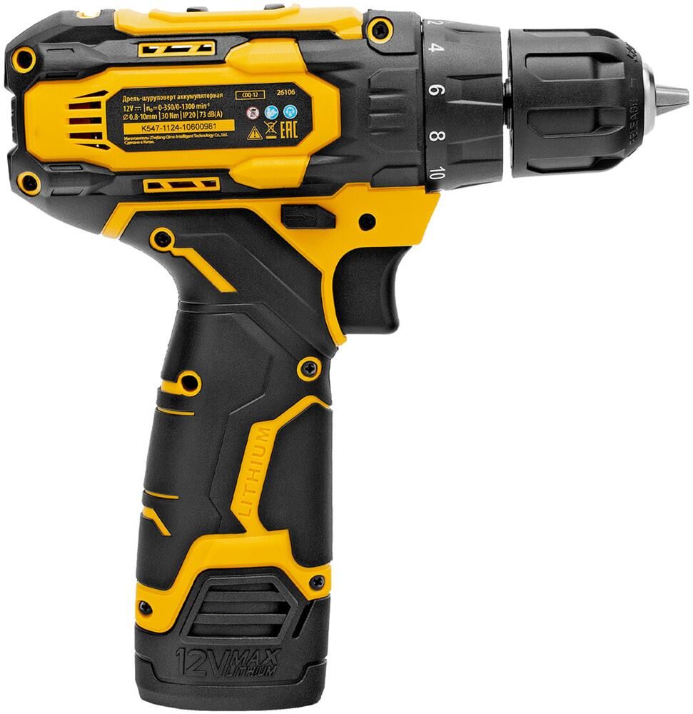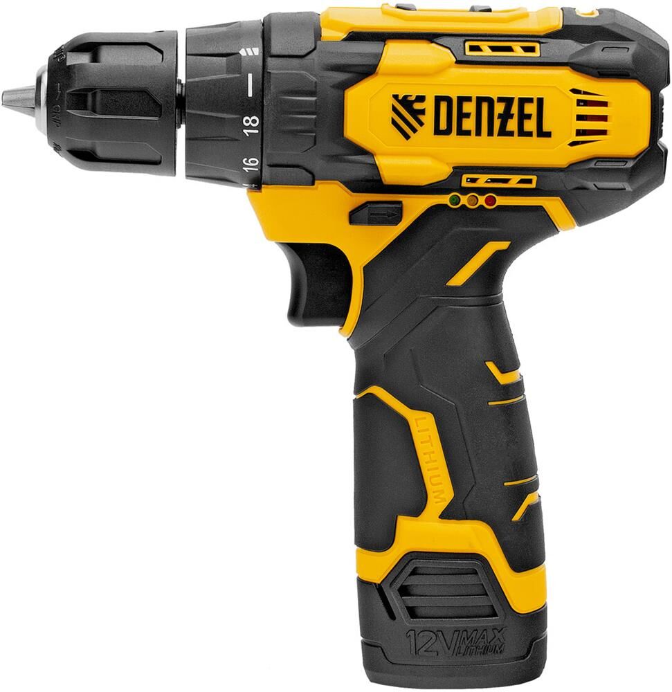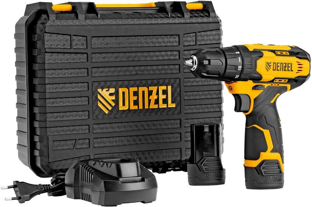 DENZEL Дрель-шуруповерт аккумуляторная CDQ-12, Li-Ion, 12 В 26106