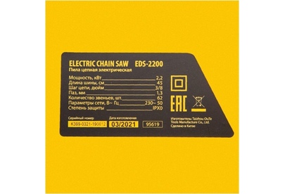 Тип двигателя электрический. Мощность 2.2 кВт. Количество звеньев 62 шт. Напряжение 230 В. Бесключевая регулировка натяжения цепи есть. Длина шины 450 мм. Шаг цепи 3/8 дюйм. Толщина ведущего звена цепи 1.3 мм. Особенности продольное расположение двигателя.