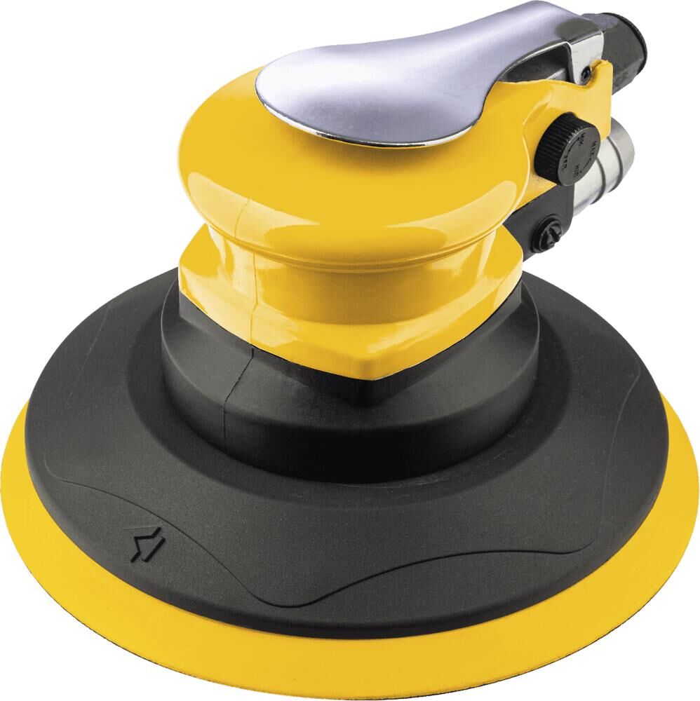 Пневматическая эксцентриковая шлифовальная машина Denzel EPG150 57476 с амплитудой 5 мм развивает скорость вращения 10000 об/мин при среднем расходе воздуха 160 л/мин. Этого достаточно для эффективного шлифования, зачистки и выравнивания любых поверхностей (древесины, металла, пластика и т.д.). С помощью машинки можно без усилий подготовить материал любой твердости к покраске или отделке, выровнять металл перед сваркой. А при использовании более мягкой насадки получится сделать любую поверхность абсолютно гладкой и придать ей дополнительный блеск.Орбитальная шлифмашина предназначена для работы при давлении 6,3 бар, расход воздуха не превышает 200 л/мин. Во время работы не забывайте использовать специальное масло ISO 46, которое можно добавлять как напрямую в инструмент, так и с помощью блока подготовки воздуха Denzel 57469, включающего в себя лубрикатор для автоматической подачи масла.