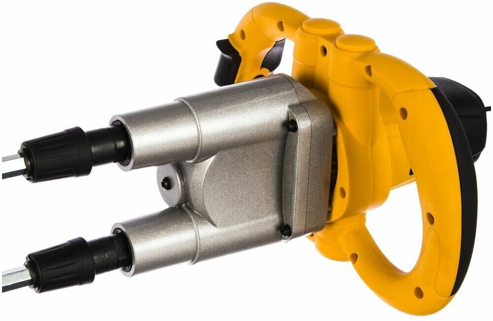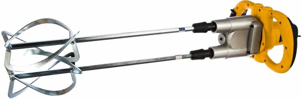 Высокоэффективный миксер Denzel с двумя насадками для качественного и быстрого приготовления различных растворов и смесей. Особенности: электронная регулировка частоты вращения насадки для выбора оптимального режима смешивния; быстросъемное крепление насадок, обеспечивающее удобство при хранении и обслуживании Преимущества: система поддержания оборотов под нагрузкой; обрезиненные эргономичные рукоятки для комфортного хвата Комплектация: Миксер строительный электрический - 1 шт.; Шнек в сборе - 2 шт.; Комплект запасных угольных щеток - 1 шт.; Инструкция по эксплуатации и гарантийный талон - 1 шт.