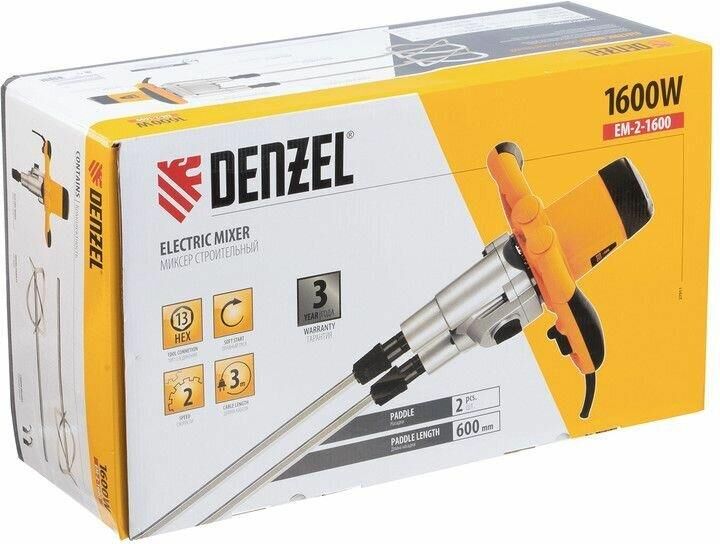 DENZEL EM-2-1600, Миксер строительный 1600 Вт, 200-480/250-680 об/мин