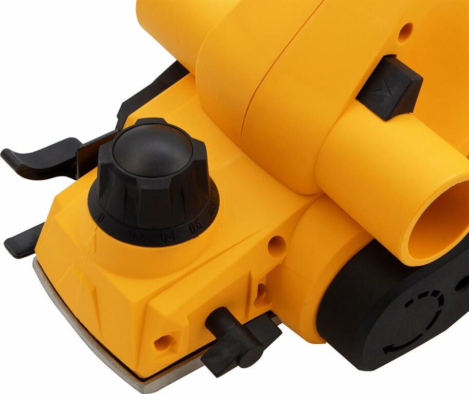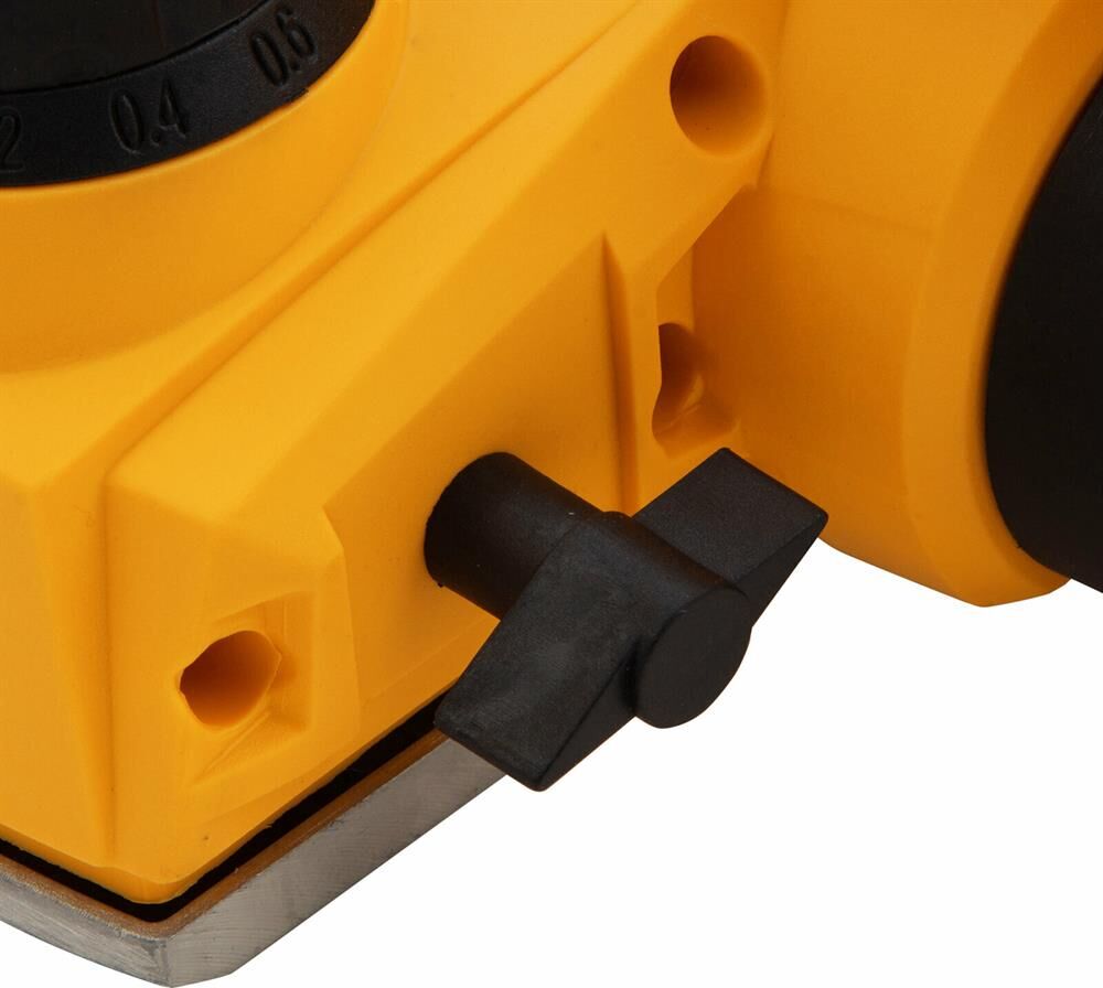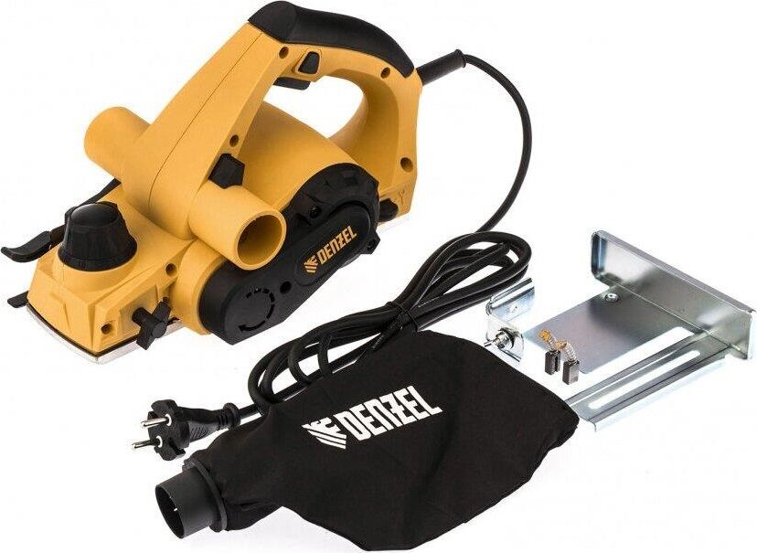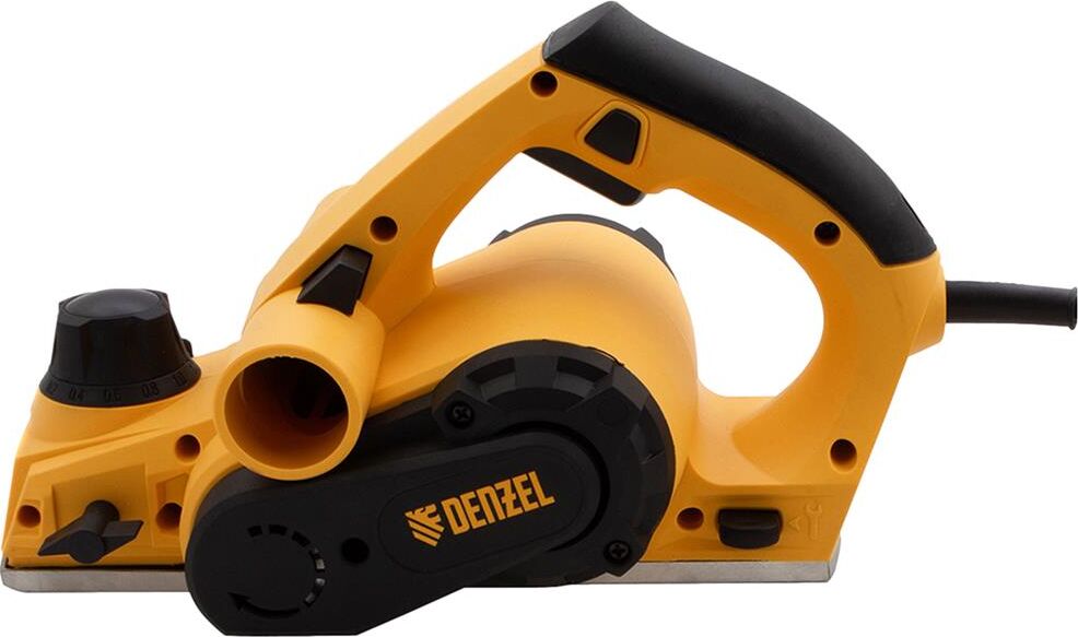 Рубанок электрический Denzel предназначен для обработки плоских поверхностей заготовок из древесины и ее производных, снятия фасок, выборки четверти (ступени). Особенности: оригинальная конструкция узла переключения направления выброса стружки, обеспечивающая улучшенную вентиляцию канала выброса в любом положении; 11-позиционная регулировка глубины строгания; функция "выборки четверти" 18 мм; алюминиевая подошва; индикатор включения Преимущества: функция переключения выброса стружки, уменьшающая вероятность засорения канала и позволяющая работать долгое время без его очистки; выключатель с защитой от случайного пуска; алюминиевая подошва; Продуманная эргономика и обрезиненная рукоятка делают использование машины более комфортным; Режущий барабан рубанка оснащен широко распространенными двухсторонними лезвиями. ; Оригинальная конструкция правой опоры барабана позволяет получать четверть глубиной до 18 мм, что является лучшим показателем в своем классе. ; С рубанком поставляется комплект упоров-ограничителей и