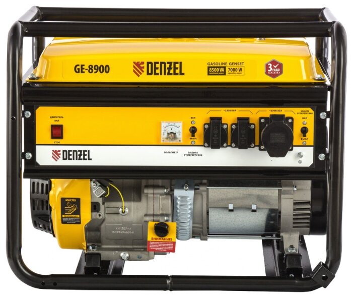 DENZEL Генератор бензиновый GE 8900, 8,5 кВт, 220В/50Гц, 25 л, ручной старт 94639