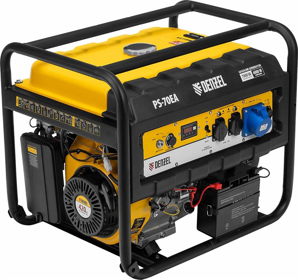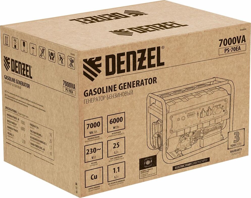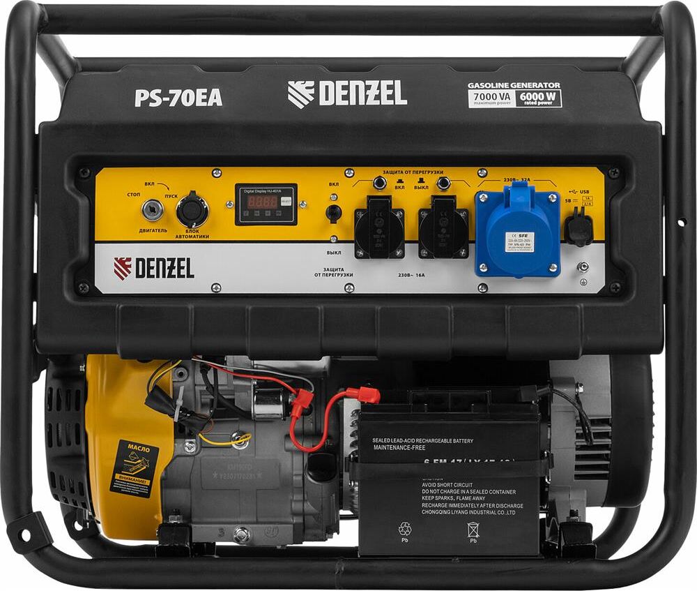DENZEL Генератор бензиновый PS 70 EA, 7,0 кВт, 230В, 25л, коннектор автоматики, электростартер 94689