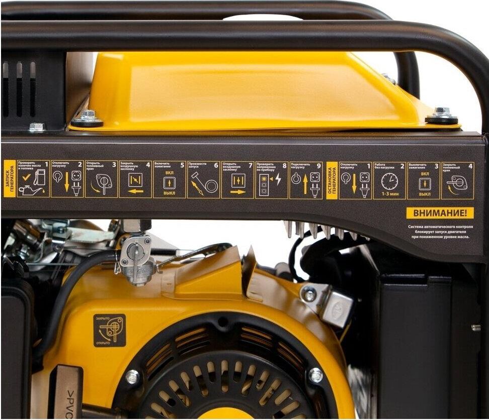 индикатор уровня масла, антивибрационная система, защита розеток от влаги и пыли