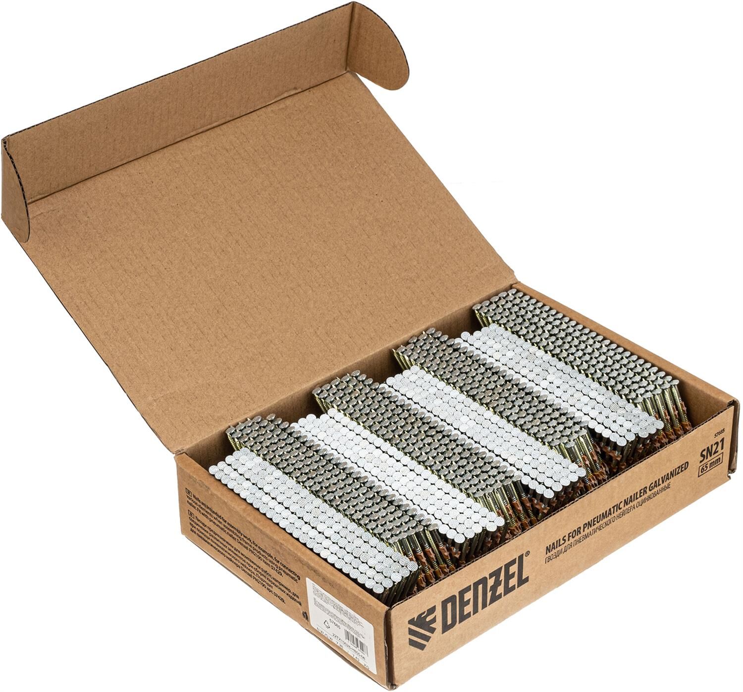 DENZEL Гвозди для пнев. нейлера (оцинк.) длина - 65 мм, диам. - 2,9 мм, 2000 шт. 57685