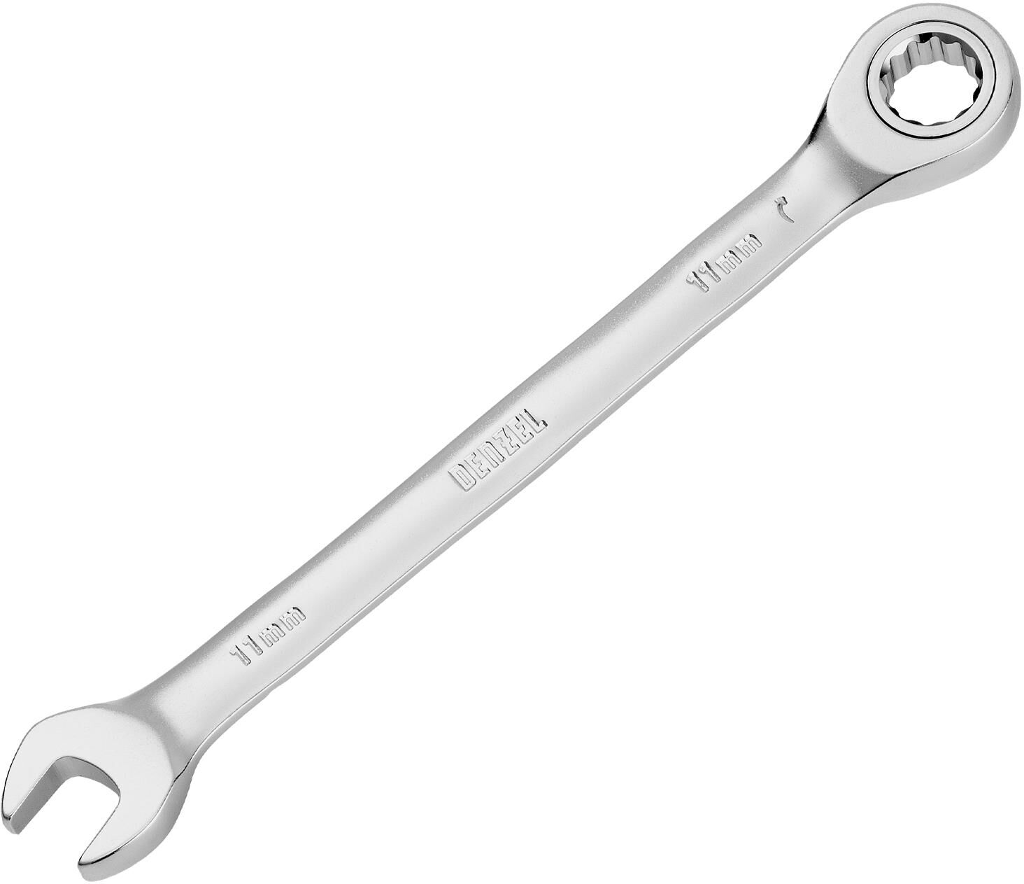 DENZEL Ключ комбинированный трещоточный, 11 мм, CrV, матовый хром 14705