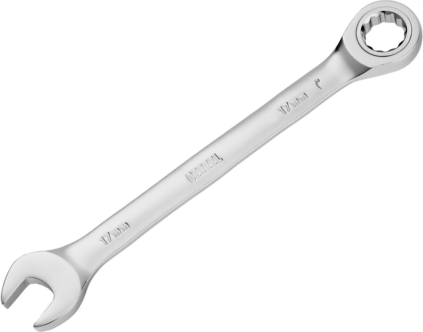 DENZEL Ключ комбинированный трещоточный, 17 мм, CrV, матовый хром 14711