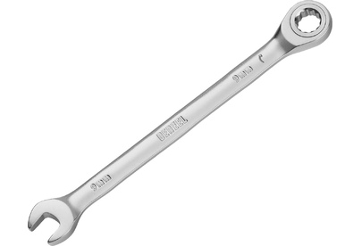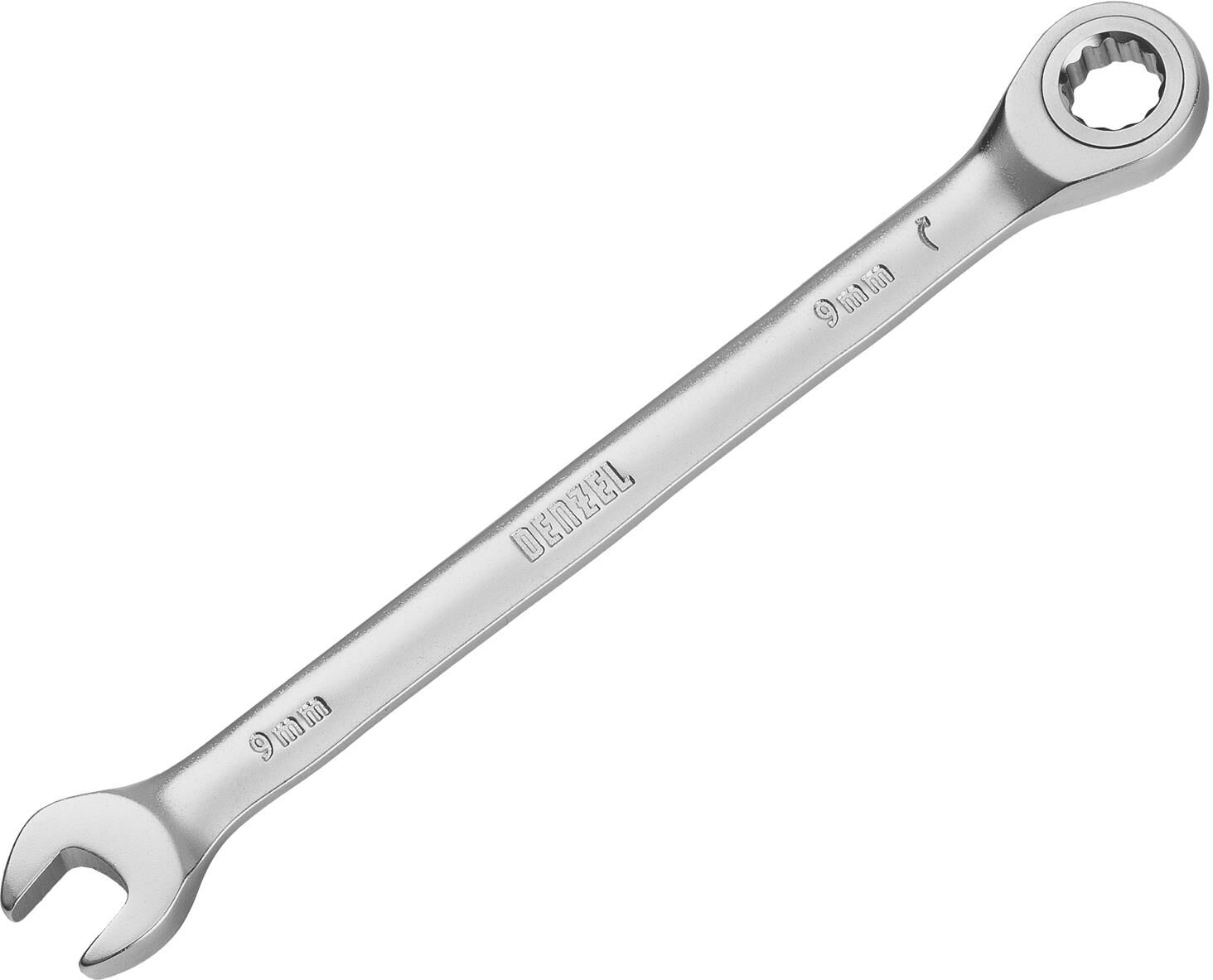 DENZEL Ключ комбинированный трещоточный, 9 мм, CrV, матовый хром 14703