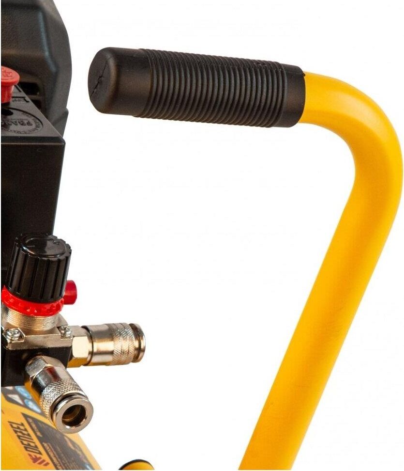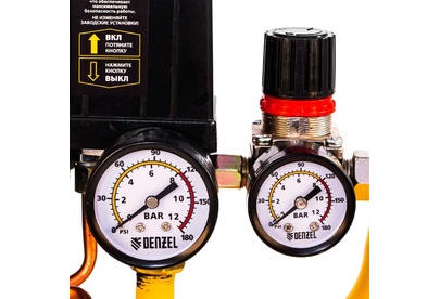 Компрессор пневматический торговой марки DENZEL предназначен для обеспечения сжатым атмосферным воздухом оборудования, аппаратуры и инструмента, применяемого в бытовых целях. Использование компрессора позволяет значительно сэкономить электроэнергию, а также повысить эффективность работы. Компрессор способен производить 230 л/мин сжатого до 8 атм воздуха, который нагнетается в ресивер общим объемом 50 литров. Особенности Напряжение питания 230 В Двигатель асинхронный однофазный Манометр для контроля давления сжатого воздуха Реле давления, осуществляющим запуск/остановку в зависимости от настроек Защитный клапан Функция автозапуска при понижении давления в ресивере ниже 6 атм Простота и удобство перемещения Преимущества Эффективная система смазки Защита от перегрева Защита от перегрузки Предохранительный клапан высокого давления Коннекторы для быстрого подключения пневмоинструмента Rapid (Евро) Резиновые опоры для снижения вибрации Металлические воздушные фильтры с бумажным картриджем Комплектность Компрессор в