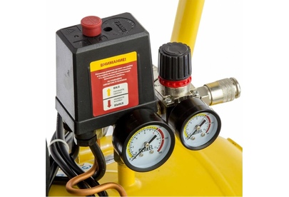 Компрессор пневматический торговой марки DENZEL предназначен для обеспечения сжатым атмосферным воздухом оборудования, аппаратуры и инструмента, применяемого в бытовых целях. Использование компрессора позволяет значительно сэкономить электроэнергию, а также повысить эффективность работы. Компрессор способен производить 280 л/мин сжатого до 8 атм воздуха, который нагнетается в ресивер общим объемом 50 литров. Особенности Напряжение питания 230 В Двигатель асинхронный однофазный Манометр для контроля давления сжатого воздуха Реле давления, осуществляющим запуск/остановку в зависимости от настроек Защитный клапан Функция автозапуска при понижении давления в ресивере ниже 6 атм Простота и удобство перемещения Преимущества Эффективная система смазки Защита от перегрева Защита от перегрузки Предохранительный клапан высокого давления Коннекторы для быстрого подключения пневмоинструмента Rapid (Евро) Резиновые опоры для снижения вибрации Металлические воздушные фильтры с бумажным картриджем Комплектность Компрессор в