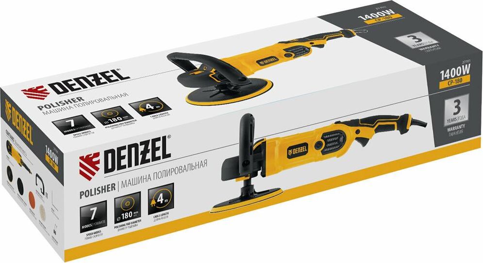 DENZEL Машина полировальная CP180, 1400 Вт, 180 мм, 03000 об/мин Denzel 27701