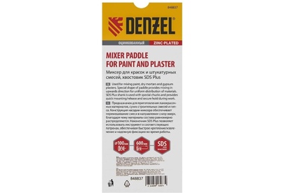 DENZEL Миксер для красок и штукатурных смесей, 100 х 600 мм, оцинкованный, хвостовик SDS Plus 848837
