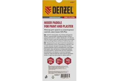 DENZEL Миксер для красок и штукатурных смесей, 120 х 600 мм, оцинкованный, хвостовик SDS Plus 848847