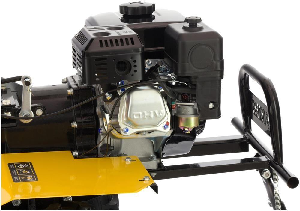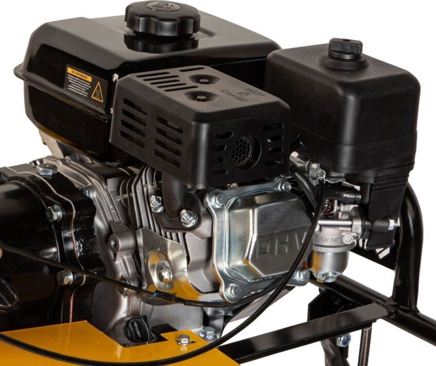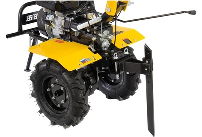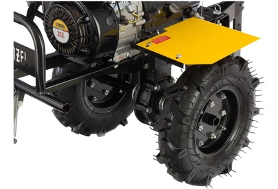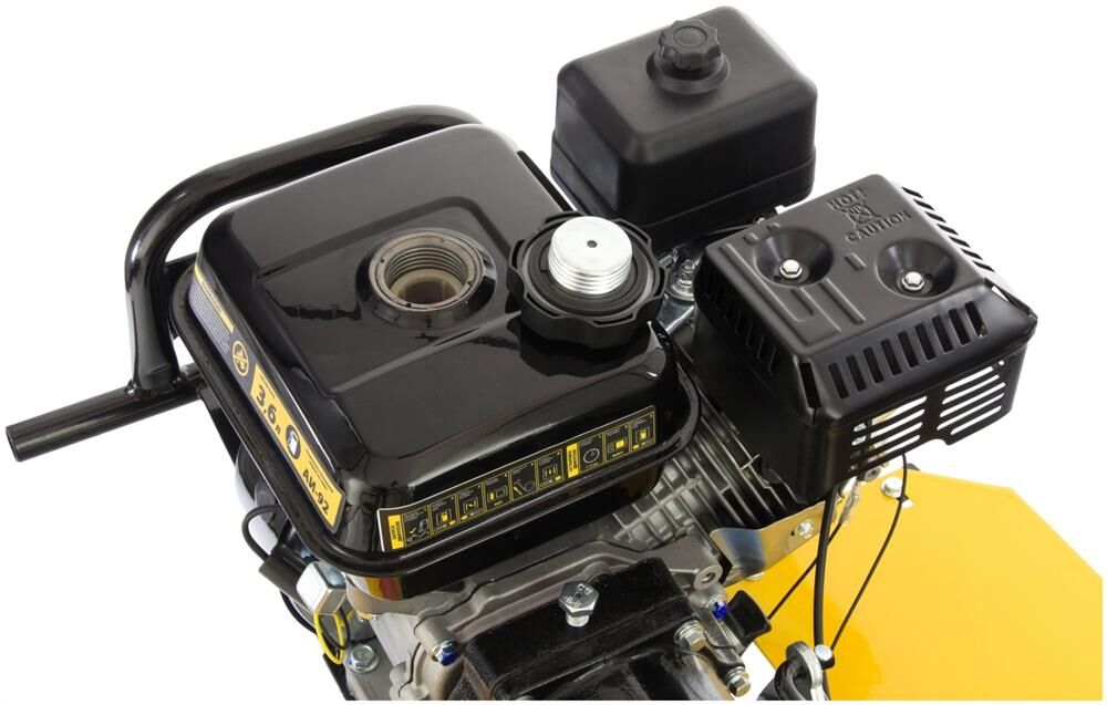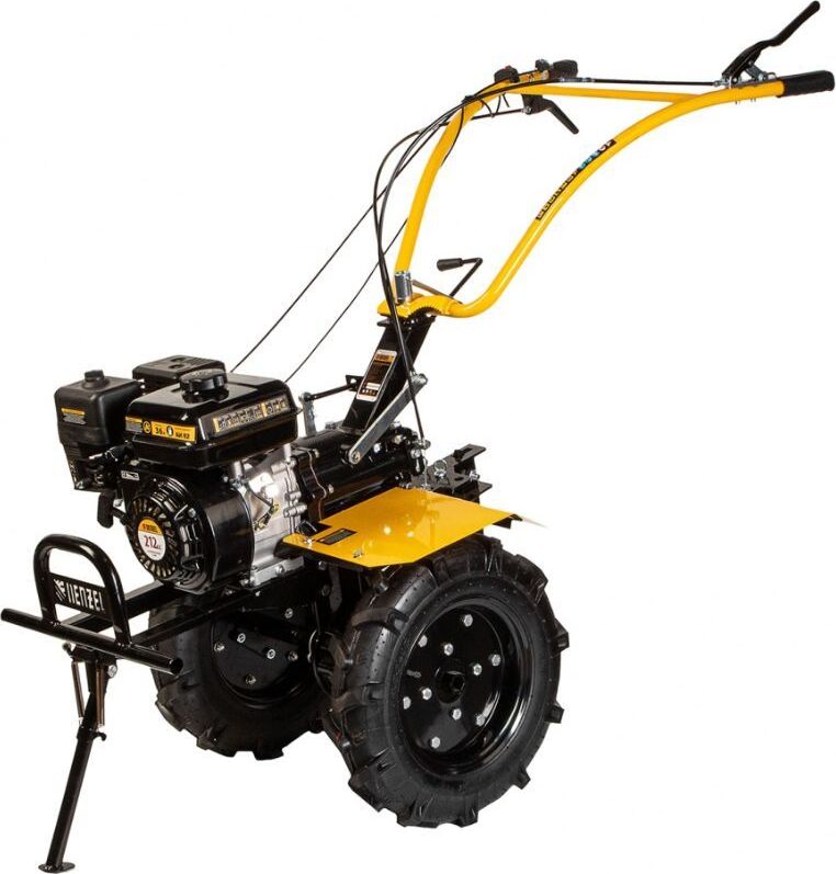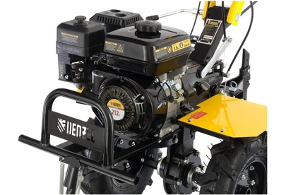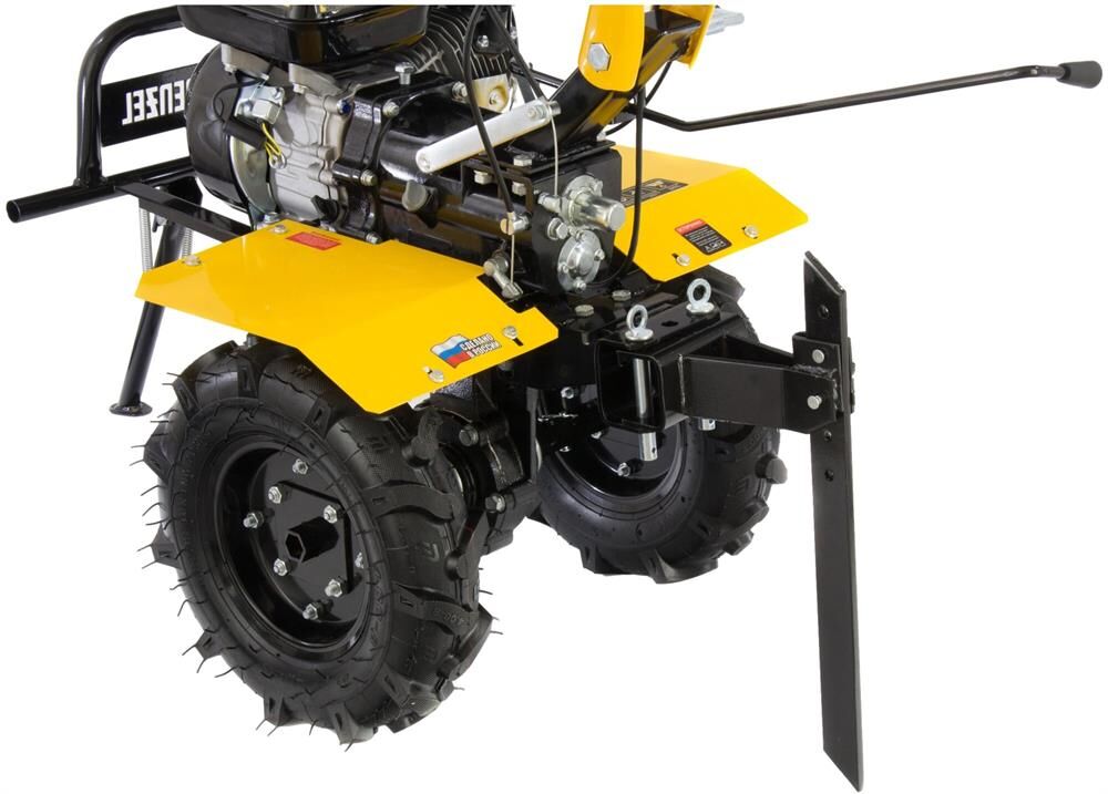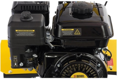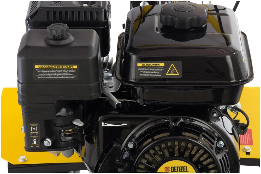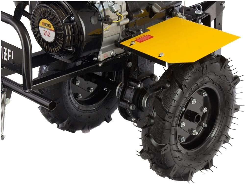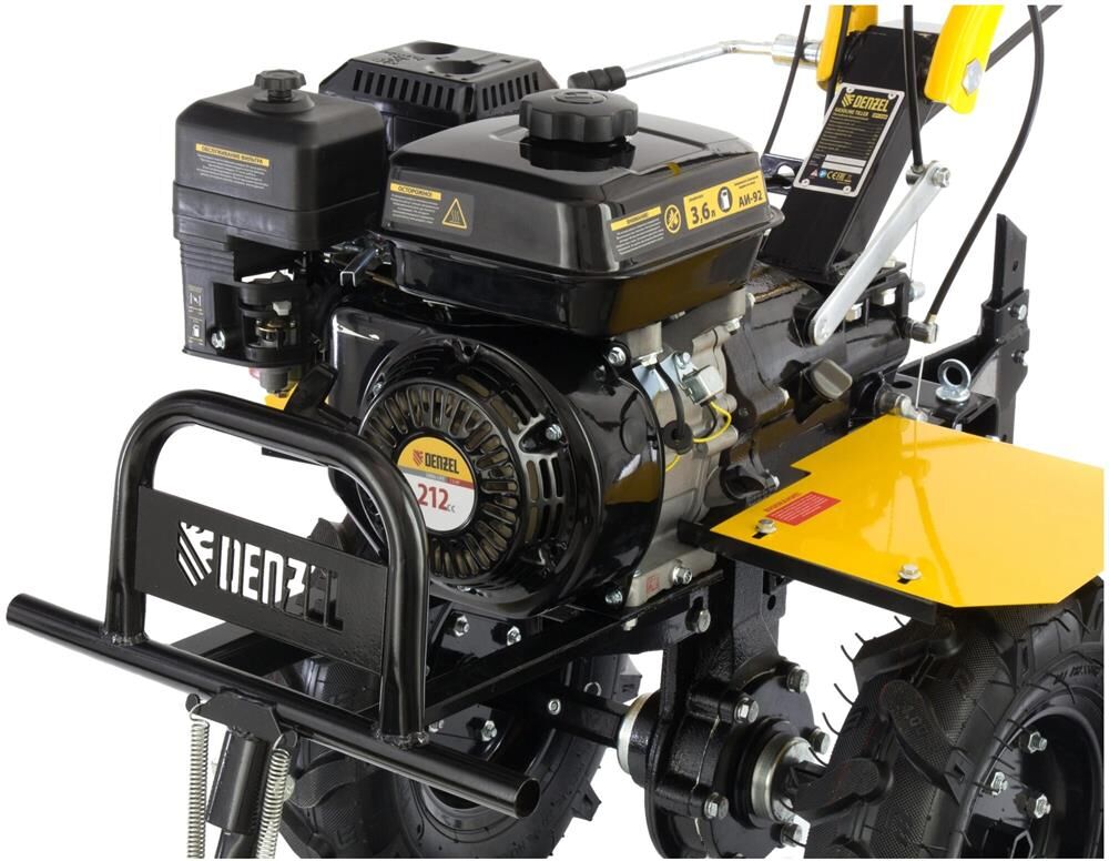 Тип двигателя четырехтактный. Мощность двигателя 7 л.с. Объем двигателя 212 см3. Производитель двигателя DENZEL. Расход топлива 1 л/ч. Уровень шума 104 дБ. Стартер ручной. Количество фрез 24. Максимальная ширина обработки 90 см. Диаметр фрез 35 см. Механизм сцепления многодисковое. Тип ступицы шестигранник 23 мм. Тип топлива АИ-92. Объем топливного бака 3.6 л. Объем масла в картере 0.6 л.Объем масла в редукторе 2.8 л. Тип редуктора шестеренчатый. Типоразмер колес 4.00-8. Число передач вперед 2/назад 1. Передача мощности на активное навесное оборудование вал отбора мощности. Колеса в комплекте.