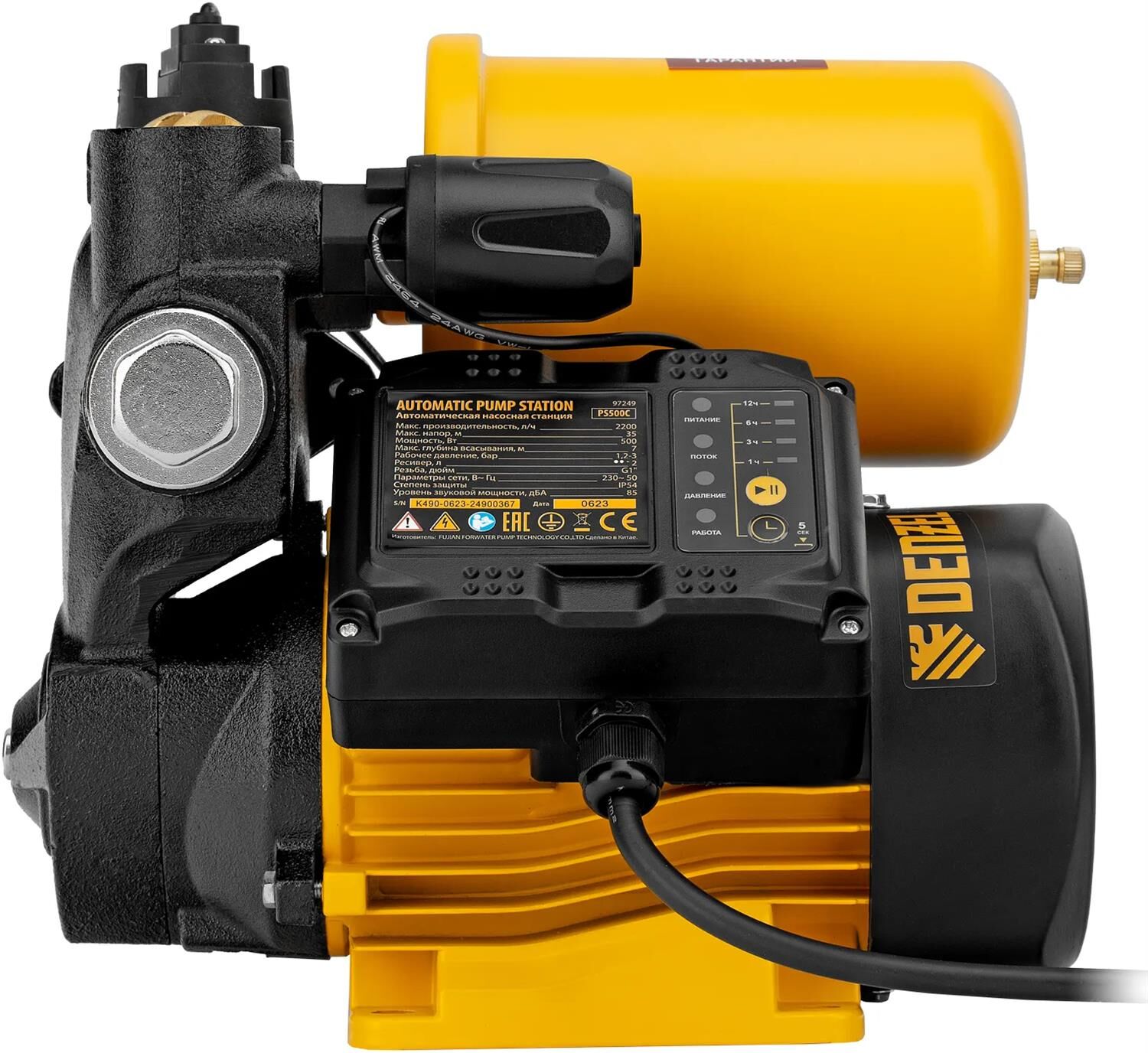 DENZEL Насосная станция PS500C, 500 Вт, напор 35 м, 2200 л/ч, ресивер 2 л, блок управления//
