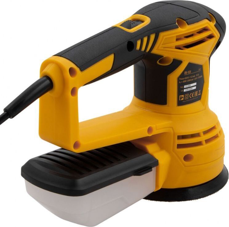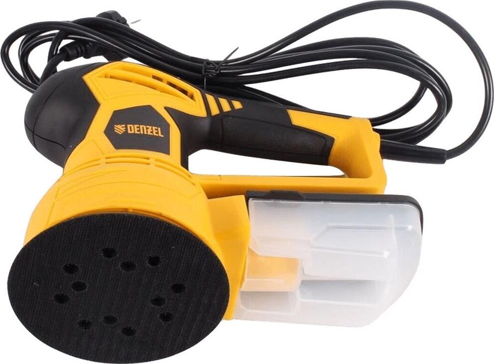 Эксцентриковая шлифовальная машина Denzel предназначена для сухого шлифования открытых плоских поверхностей, деревянных, пластмассовых и металлических деталей, в том числе с грунтовым или лакокрасочным покрытием, а также со следами поверхностной коррозии материала. Номинальная мощность 450 Вт. Частота колебаний подошвы 6000-12000 кол/мин. Размер подошвы d 125 мм. Напряжение сети 230 В. Длина кабеля 3 м. Крепление шлифлиста Velcro.