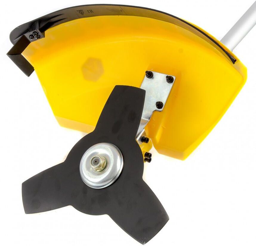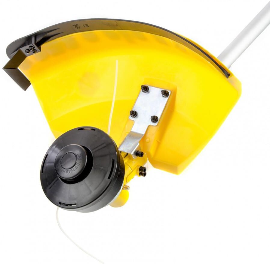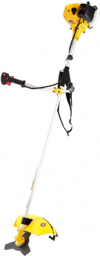 Бензиновый триммер предназначен для скашивания травы и молодого кустарника на открытых пространствах. Оптимально использование при выкашивании травы в труднодоступных местах: вдоль кромок дорожек и стен строений, а также вокруг деревьев.Тип двигателя бензиновый. Тактность двигателя двухтактный. Мощность 1.8 л. с.. Максимальный диаметр лески 3 мм. Ширина скашивания леской 420 мм. Ширина скашивания ножом 255 мм. Крепление шпули M10 x 1.25 LH. Режущий элемент нож, леска. Тип топлива Смесь АИ-92 и масла. Тип ручки велосипедная. Тип катушки полуавтоматическая. Посадочный диаметр для установки диска 25.4 мм. Объем топливного бака 0.7 л. Частота вращения шпинделя 9500 об/мин. Уровень звукового давления 110 дБ. Потребление топлива при максимальной нагрузке 1.1 л/ч. Тип штанги неразъемная.