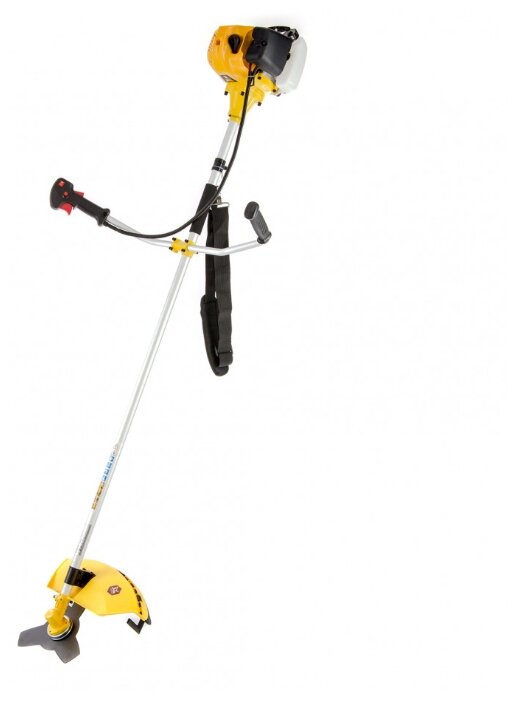 Бензиновый триммер предназначен для скашивания травы и молодого кустарника на открытых пространствах. Оптимально использование при выкашивании травы в труднодоступных местах: вдоль кромок дорожек и стен строений, а также вокруг деревьев. В зависимости от рельефа местности и плотности растительного покрова предусмотрена быстрая замена режущего инструмента: стальной режущий диск, предназначенный для работы с жесткой травой и молодым кустарником, меняется на режущую полуавтоматическую триммерную катушку с леской для скашивания травы. Преимущества: Мощный и экономичный двигатель Denzel. Наработка на отказ 80 часов, подтвержденная испытаниями. Полуавтоматическая катушка с леской, трехлопастной диск и ремень в комплекте. Надежная конструкция стартера. Качественный ударопрочный пластик. Точная балансировка инструмента для продолжительного использования. Эргономичная конструкция.