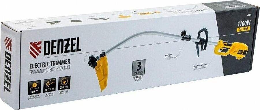 DENZEL Триммер электрический TE1100, 1100 Вт, 380 мм, катушка, разборная штанга 96641 (1 коробка)