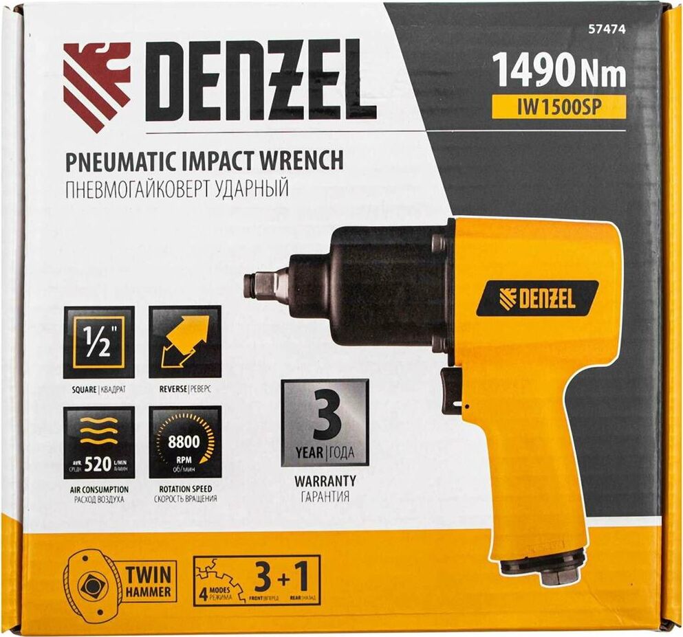 DENZEL Ударный пневмогайковерт IW1500SP, 1/2 , 8800 об/мин, 1490 Нм 57474