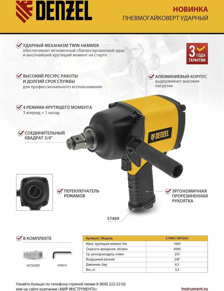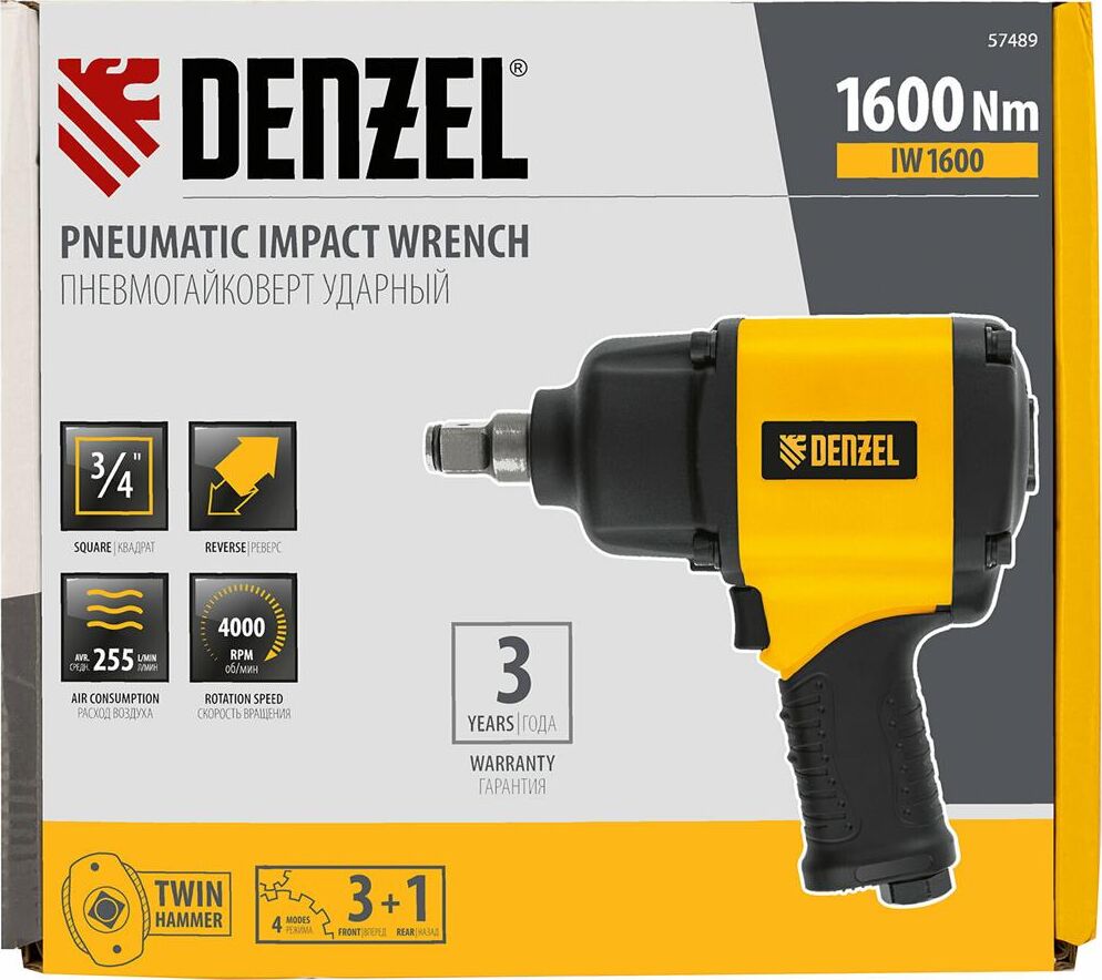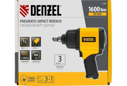 DENZEL Ударный пневмогайковерт IW1600, 3/4", 4000 об/мин, 1600 Нм Denzel 57489