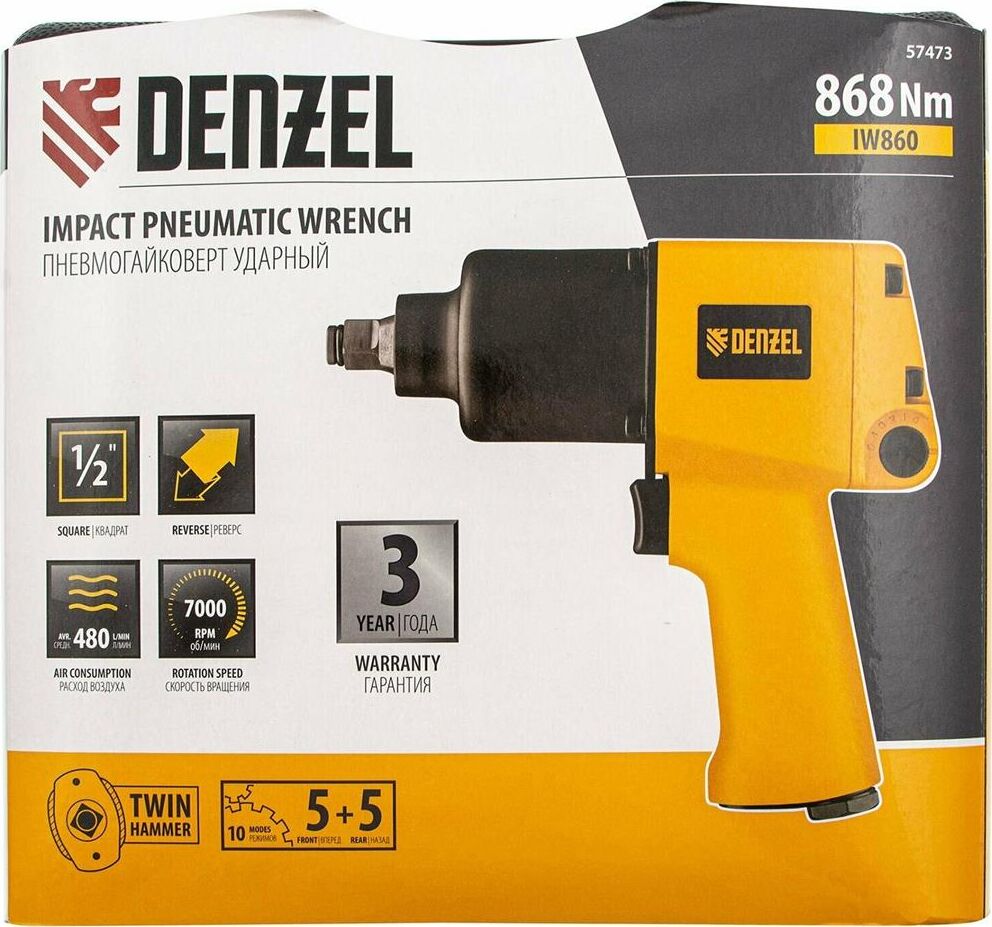 DENZEL Ударный пневмогайковерт IW860+набор головок, 1/2 , 7000 об/мин, 868 Нм 57473