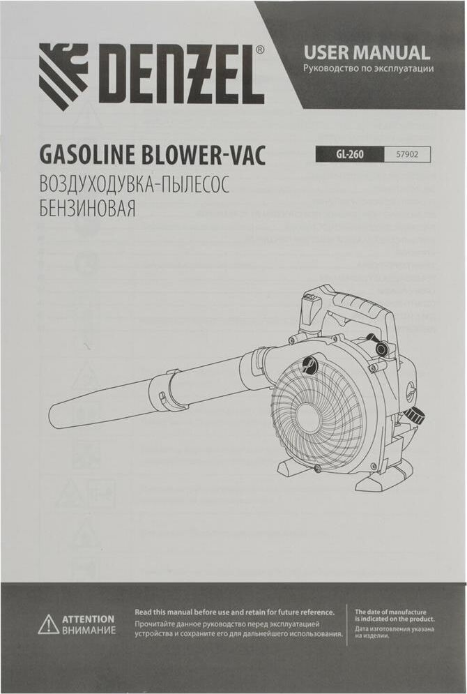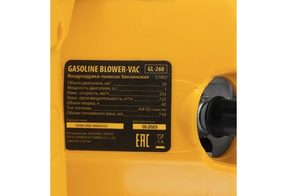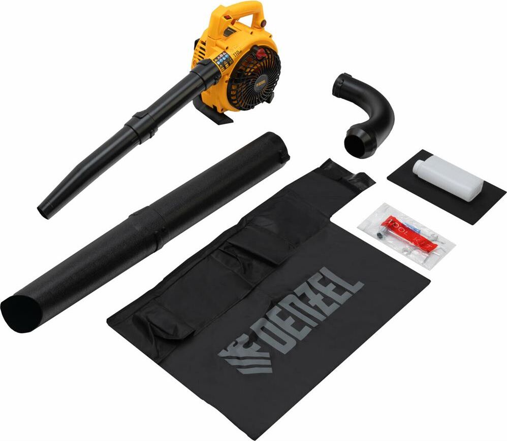 Бензиновая воздуходувкапылесос Denzel GL260 57902 с двухтактным двигателем объемом 26 см3 и мощностью 1 л.с. предназначена для очищения территории от листьев и скошенной травы. Скорость потока воздуха составляет 245 км/ч, что обеспечивает высокую эффективность работы.;Инструмент работает как в режиме обдува, так и всасывания: при этом мусор измельчается в мешок объемом 40 л, входящий в комплект поставки. Такое решение избавляет от необходимости вручную собирать листву и траву после уборки. Предусмотрена функция измельчения мусора, что позволяет использовать его в качестве мульчи для удобрения растений.