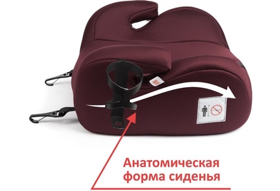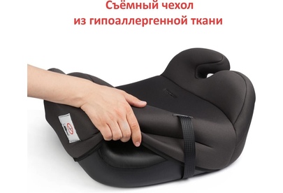 Ортопедическая форма сидения Увеличенное посадочное место Удобные подлокотники Усиленный каркас Возможно использование в автомобиле без системы ISOFIX Изготовлено из гипоаллергенных материалов