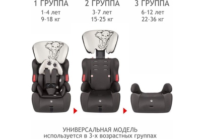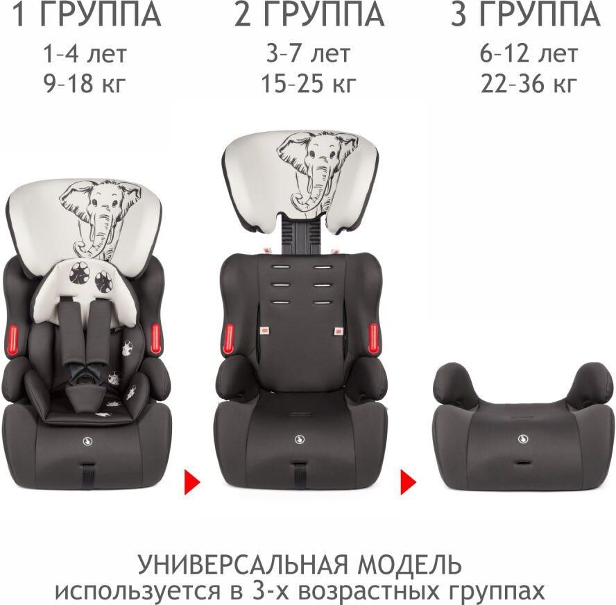 Детское автокресло SIGER KRES3597 Космо Lux гр.I/II/III, слон серый, бежевый