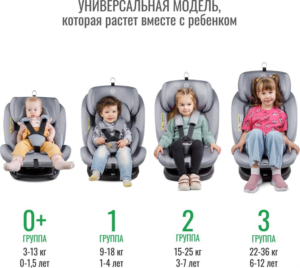 Детское автокресло SMART TRAVEL УУД Boss Isofix гр.0+/I/II/III, Light grey