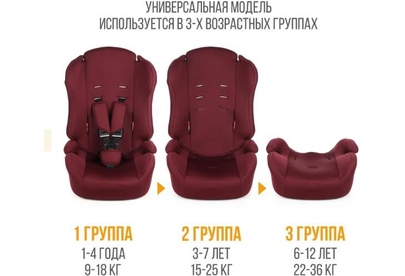 Детское автокресло ZLATEK KRES4137 ZL513 Basic разборное гр.I/II/III, бордо