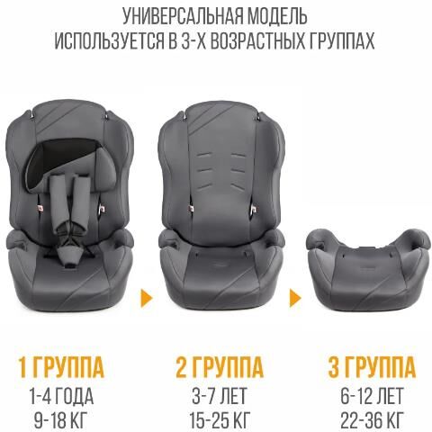 Детское автокресло ZLATEK KRES4144 ZL513 разборное гр.I/II/III, серый