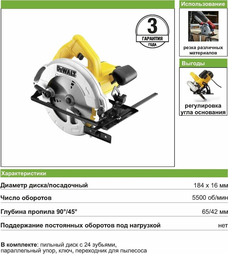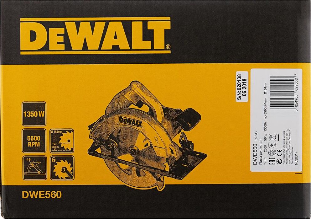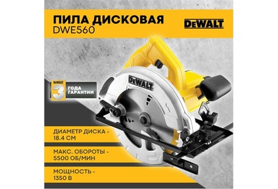 DEWALT Циркулярная пила (дисковая) DWE560-QS 1350Вт (ручная) D диска.:184мм