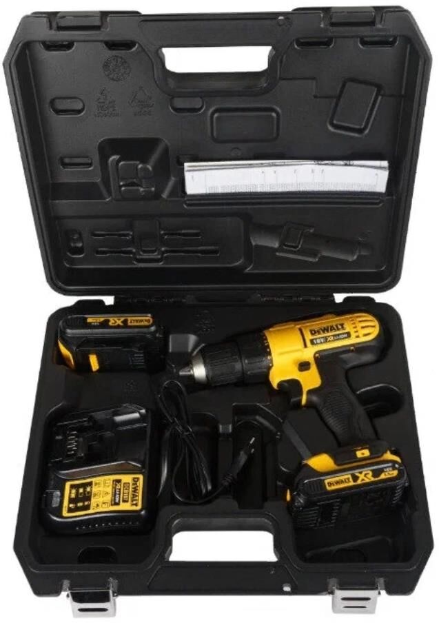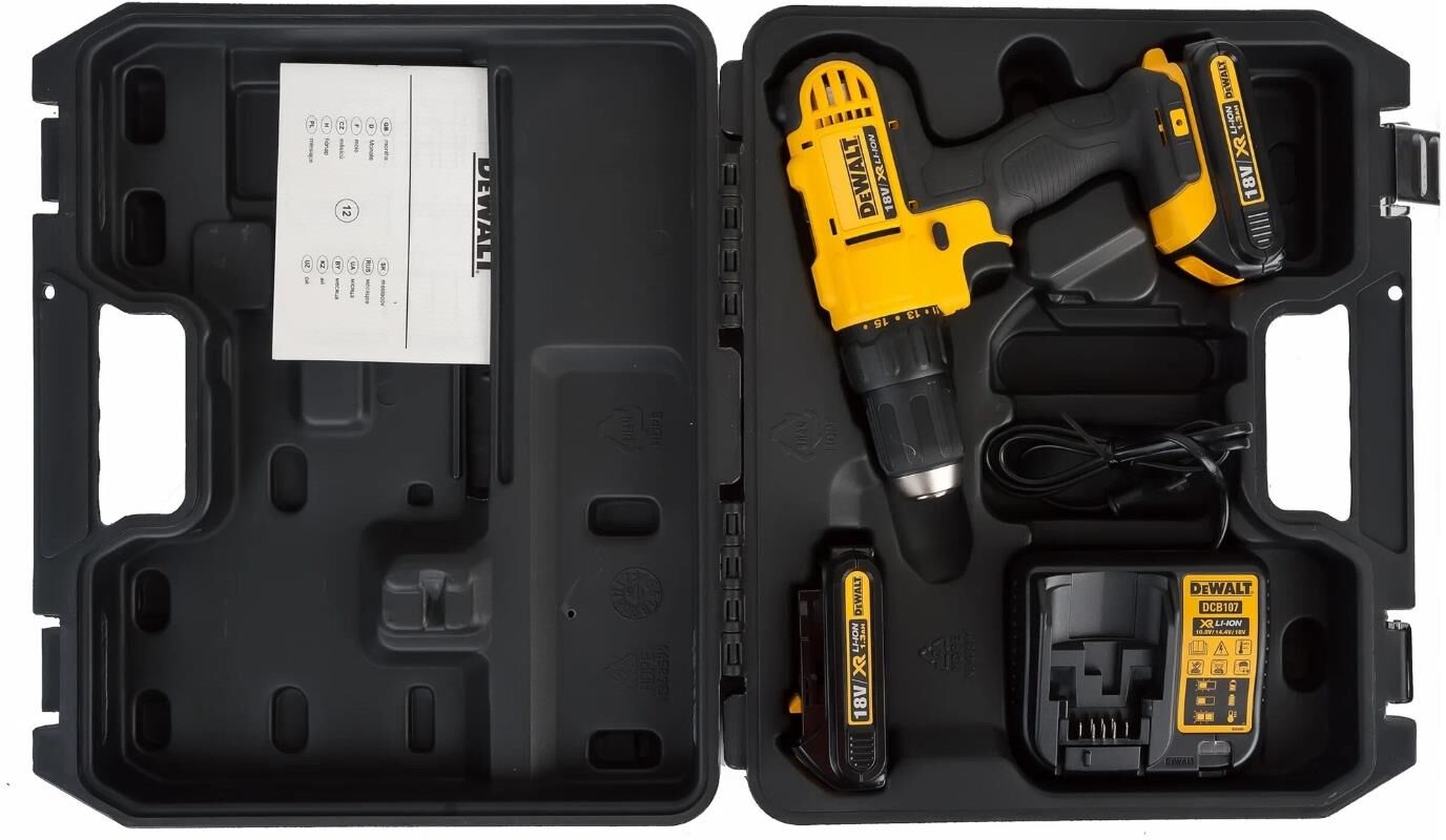 DEWALT Дрель-шуруповерт DCD771S2 аккумуляторная /18 В/42 Нм/до 1500 об. в мин/ 2 АКБ 1.5Ач + ЗУ/быст