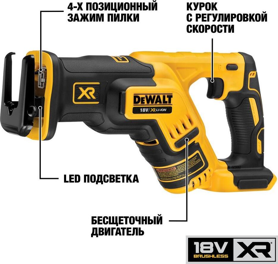 DEWALT Сабельная пила DCS367N 824Вт аккум. 2900ход/мин (DCS367N-XJ)