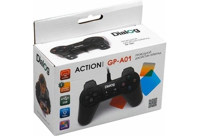 Геймпад проводной , интерфейс: USB 1.1 или 2.0, режимы работы: цифровой, органы управления: восьмипозиционный переключатель направления и кнопки управления, количество кнопок управления: 10, цвет: черный.