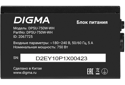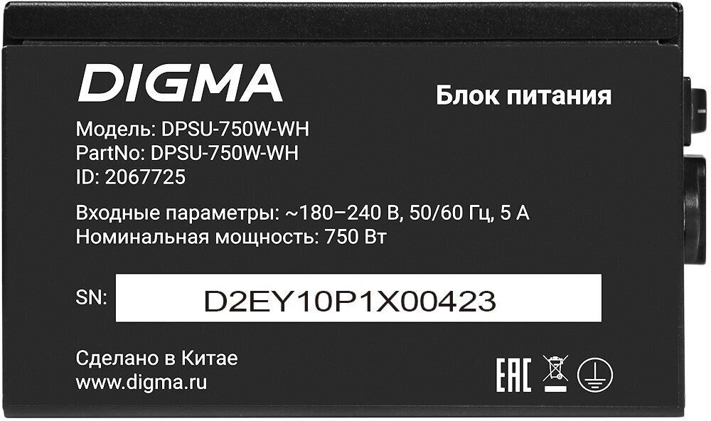 DIGMA Блок питания DPSU-700W-WH, 700Вт, 80 PLUS WHITE, 120мм, черный, retail